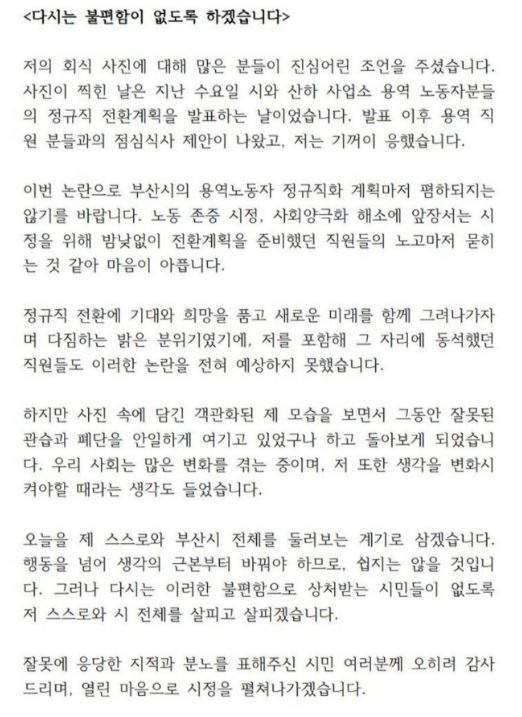 이에 대한 부정적 여론이 확산되자 오거돈 시장이 오늘 사과했습니다. 오거돈 부산시장, 성추행 시인하여 전격 사퇴 발표 5분 정도 짧은 면담 과정에서 불필요한 신체접촉 시정이 정상 운영되도록 모든. 오거돈 부산시장 회식 39 여성 자리 배치 39 논란 더하기 뉴스. 오 시장이 지난 14일 부산시 산하 기관 용역업체 직원들과의 오찬 회식 때 여직원들을 양옆에 앉게 한. 사회 속보오거돈 피해자분들에게 다시 사죄…자숙하고 살겠다 최후진술 (11).